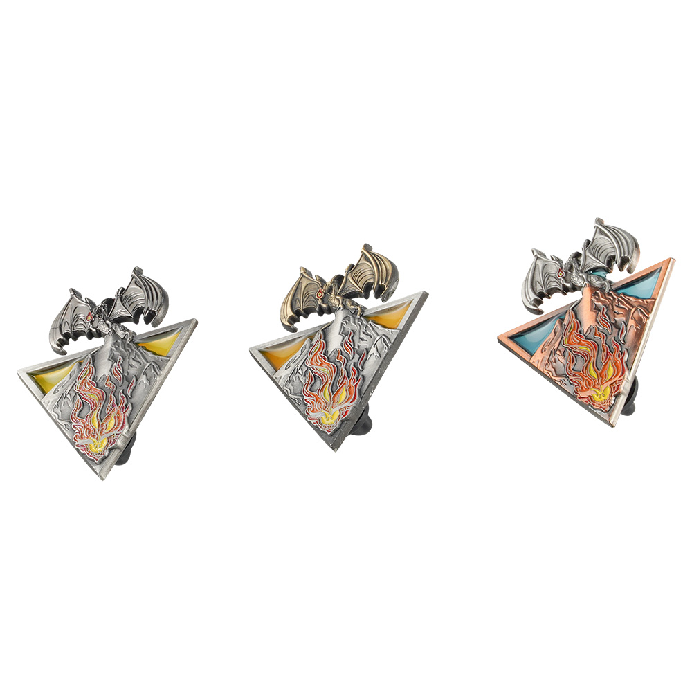 Translucent pin, factory adds translucent enamel in cutouts of pin, when viewed against the light, the pins can be seen-through. When translucent enamel is filled on recessed metal, the texture on background can be revealed, presenting a vague and mysterious feeling.